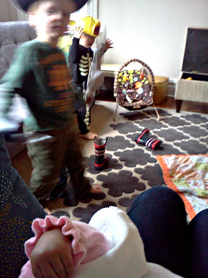 A few hours later, we met the sweet thing and now she lays, sleepy eyed in the sling while my boys "craft" with feathers and tissue paper and I type along to Christmas music (don't judge me!). It's strange how one phone call can change the entire game.